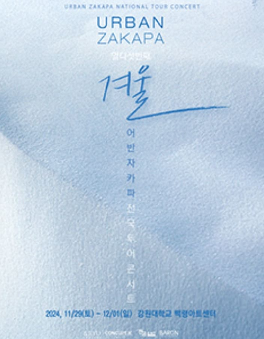 2024 어반자카파 전국투어 콘서트 열다섯 번째 '겨울' - 서울이 드디어 2024년 12월 7일(토) ~ 8일(일) '장충체육관'에서 열립니다. 인터파크 예매는 2024년 9월 25일(수) 오후 5시 d인터파크에서 진행